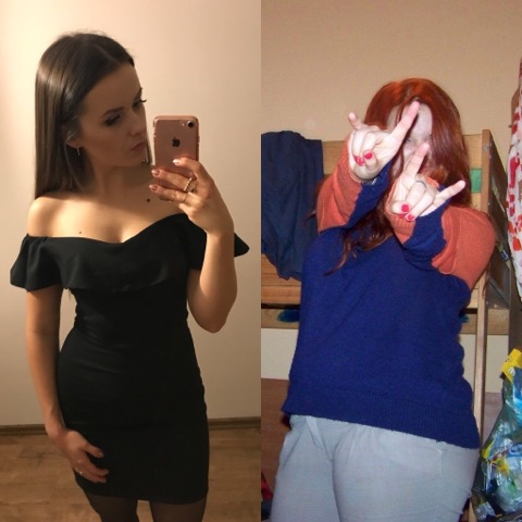 W momencie, kiedy były robione te zdjęcia moja waga wskazywała ok 75 kg przy 164 cm wzrostu. Moja aktualna masa ciała to 58 kg. Oczywiście, nie jest jeszcze idealnie. Chciałabym bardziej wymodelować ciało, co mogę osiągnąć regularnymi ćwiczeniami (to jedno z moich postanowień noworocznych)